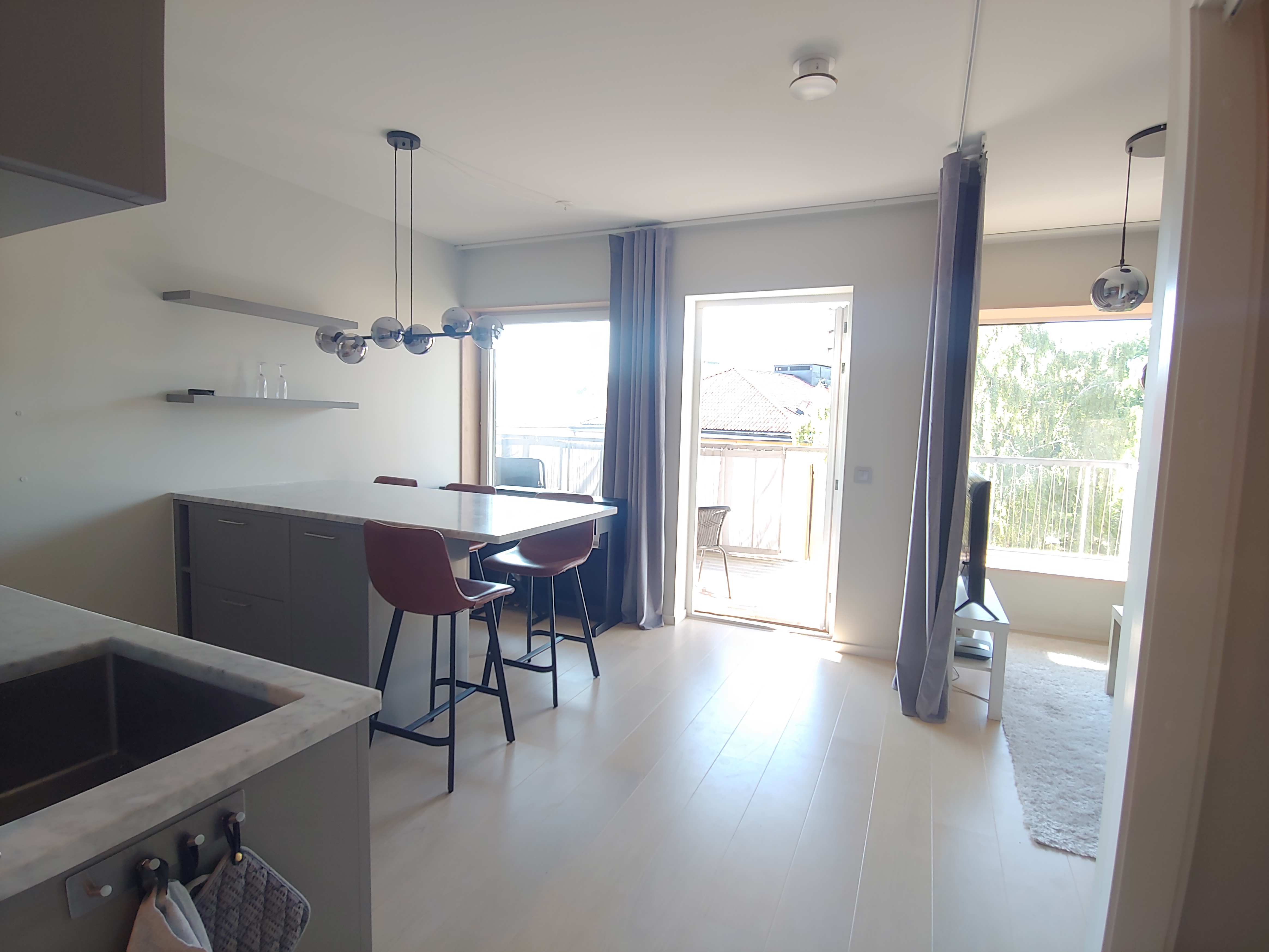 Yteffektiv lägenhet med stor balkong och hög standard uthyres tills vidare fullt möblerad. Inflyttning från 6 April. 9 kvadratmeter stor balkong i nordvästläge med sol från februari till oktober. Åt öster utsikt mot havet där färjorna mot Finland och Baltikum passerar dagligen. Åt väster utsikt mot Gärdet och Kampementsbadet som är öppet för bad från maj till september. På vintern utsikt över längdskidspåren på Gärdet. Åt norr utsikt mot Londonparken, med närmaste ICA 200 meter från bostaden på andra sidan parken. Fullt utrustat kök med stor köksö. Mikrovågsugn/kombiugn, induktionshäll, kyl och frys, diskmaskin från Fisher & Paykel, lådor från Blum och bänkskivor i carraramarmor. En stor extrafrys finns på balkongen vid behov. Badrum i carraramarmor utrustat med kombinerad tvättmaskin och torktumlare från Smeg. Större tvättstuga med bland annat torkskåp finns i fastigheten. Lägenheten har i praktiken två sovrum, se planritning. Observera att planritningen är ungefärlig. Det ena sovrummet nyttjas idag som kontor och är utrustat med skrivbord och en stor 2.5K display. Rummet kan enkelt konverteras till sovrum vid behov genom att lyfta bort skrivbordet. En fin 120x200cm säng från Jensen finns till förfogande i rummet tillsammans med täcke och kuddar. Här finns även ett stort städskåp med städutrustning samt strykjärn och strykbräda. Rummet har även LED-slingor i taket med RGB-färg med trådlös styrning. Det andra "sovrummet", som skärmas av med hjälp av gardiner (se bild), utgörs av en upphissningsbar 140x200cm säng. Rummet kan således nyttjas som vardagsrum under dagtid och sovrum under nattetid. Här finns även en 43” 4K UHD TV från Samsung med Chromecast. Notera att den upphissningsbara sängen är manuellt manövrerad och att det krävs ca 20 kg kraft för att lyfta den. Om det finns en oro över att detta är för tungt så går det bra att välja att ha sängen antingen i nerhissat läge eller upphissat läge vid inflytt. I hallen återfinns tre stora garderober med gott om plats för både kläder och skor. Ett stort antal galgar ingår. Vidare är hela lägenheten utrustad med vattenburen golvvärme. Lägenheten är även mycket bra isolerad mot både kyla och ljud. Entrédörren är en säkerhetsdörr med lås från Yale som öppnas antingen med kod eller bricka. Kvarteret är ett mycket lugnt kvarter, trots närheten till city. Buss 1 och 72 går 100m från lägenheten, med vilka man enkelt tar sig in till centrum eller till exempel KTH. Gärdets tunnelbana når man med en kort promenad på 800m över Gärdet. Det går även mycket fina cykelvägar från Gärdet till centrum och resten av Stockholm, som plogas och saltas på vintern. Cykelförråd finns i fastigheten. Rökning är ej tillåten. Husdjur kan tillåtas mot en extra avgift. Bredband/wifi, el och vatten ingår i hyran. Stor vikt läggs på personlig lämplighet vid uthyrning. Detta är en fin fastighet i ett fint kvarter med nolltolerans mot stök och oreda.